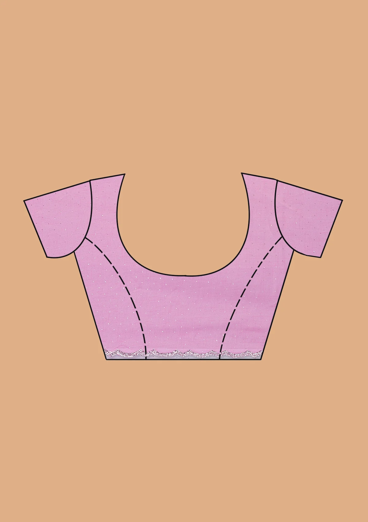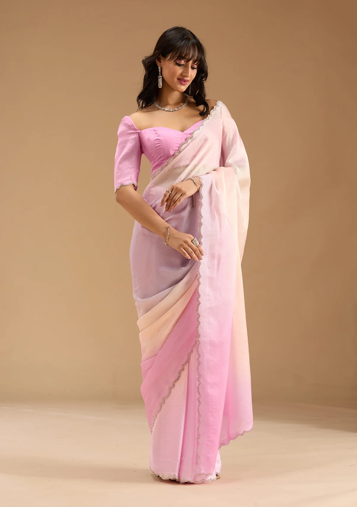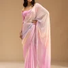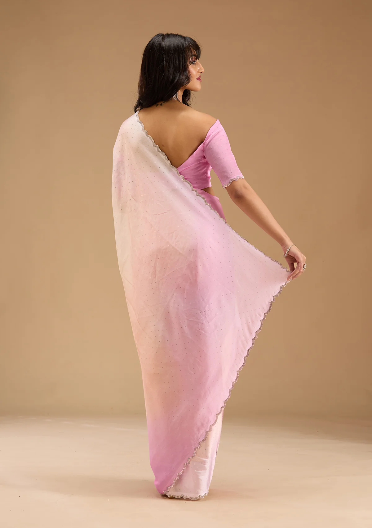 Baby Pink Saree in Satin fabric. The Saree is elevated with Stonework (Silver) embroidery. It comes with an Unstitched blouse. Comes with the Wearfella Trends promise of premium quality.