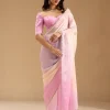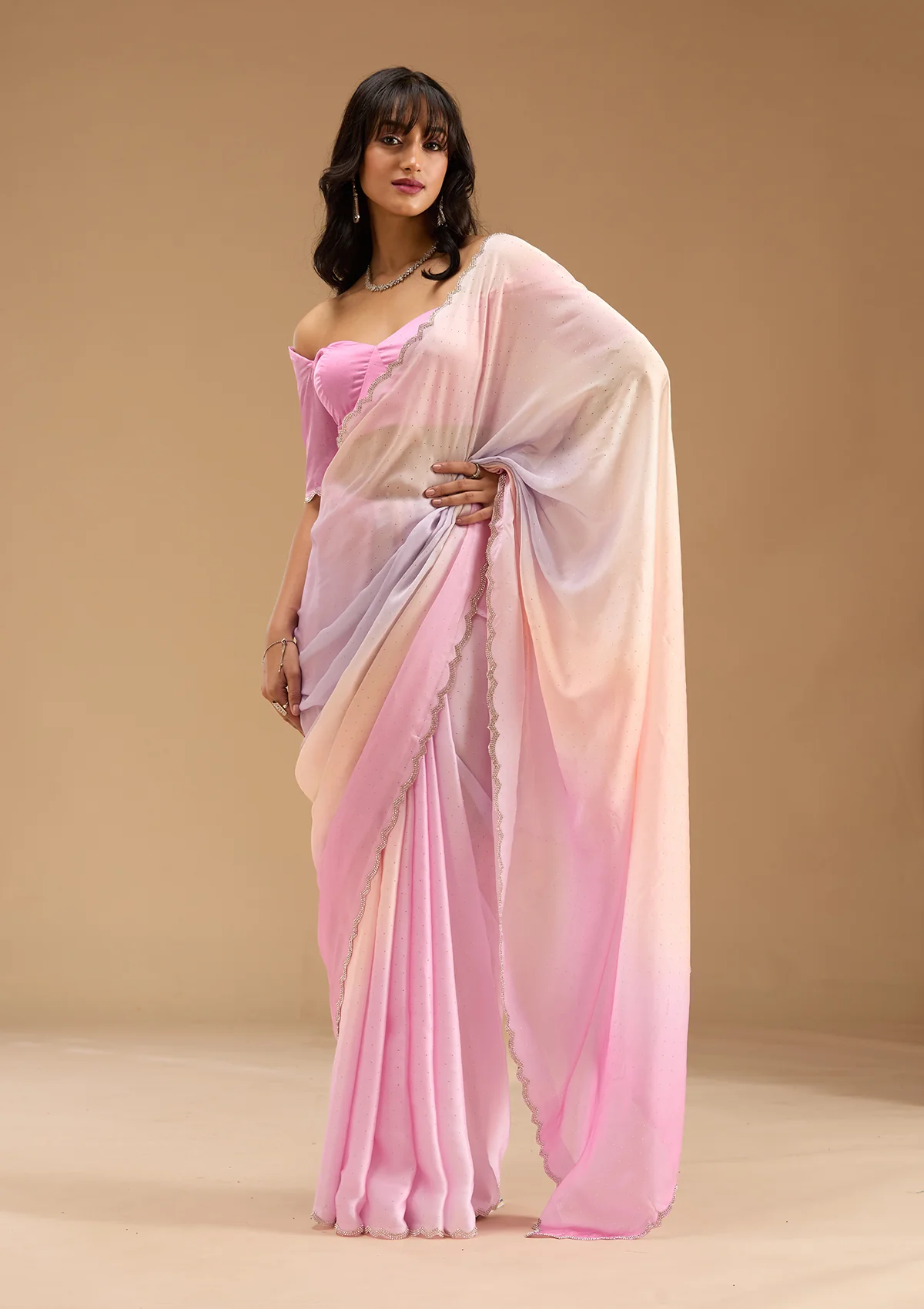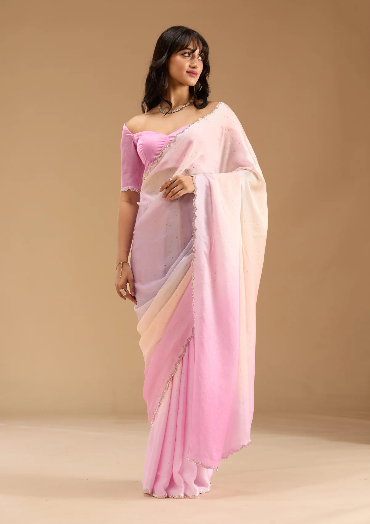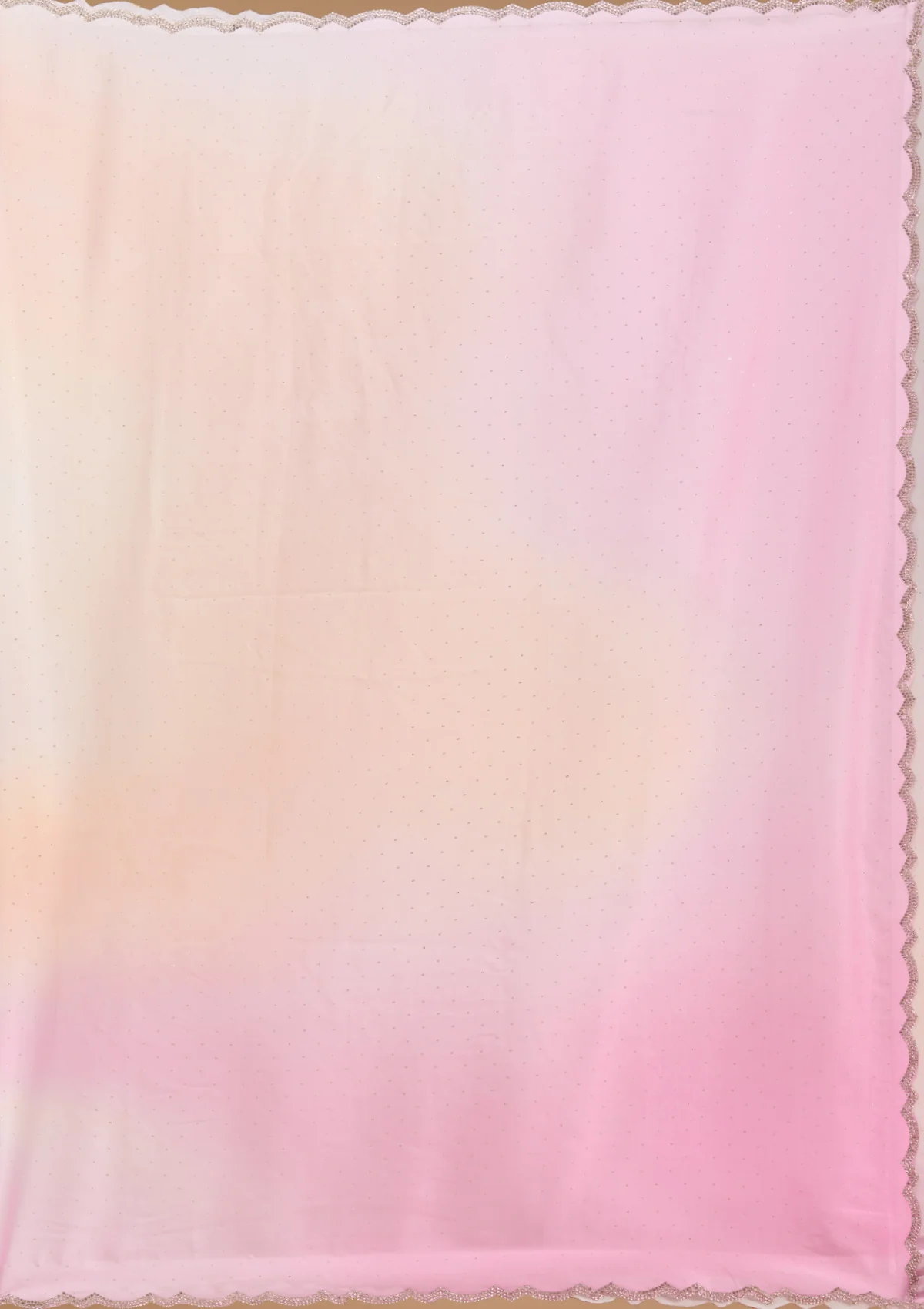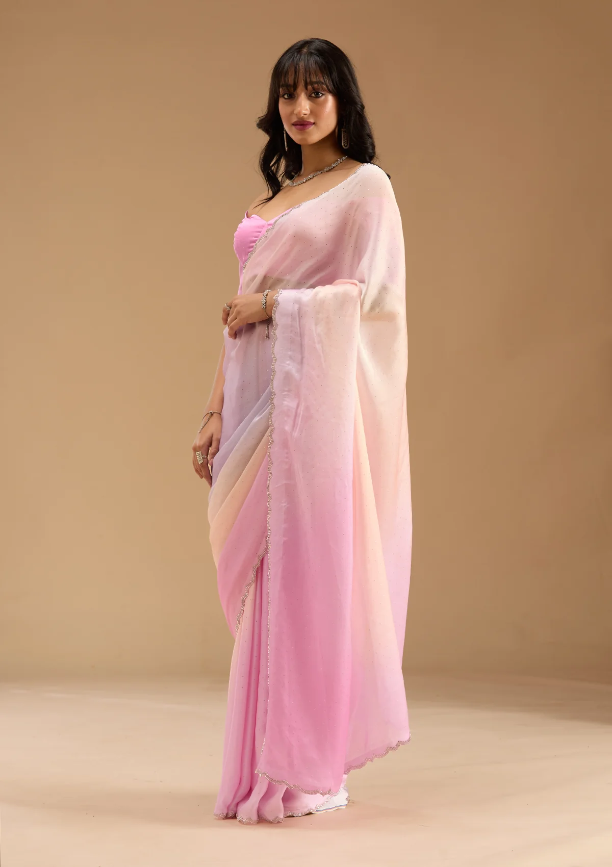 Baby Pink Saree in Satin fabric. The Saree is elevated with Stonework (Silver) embroidery. It comes with an Unstitched blouse. Comes with the Wearfella Trends promise of premium quality.