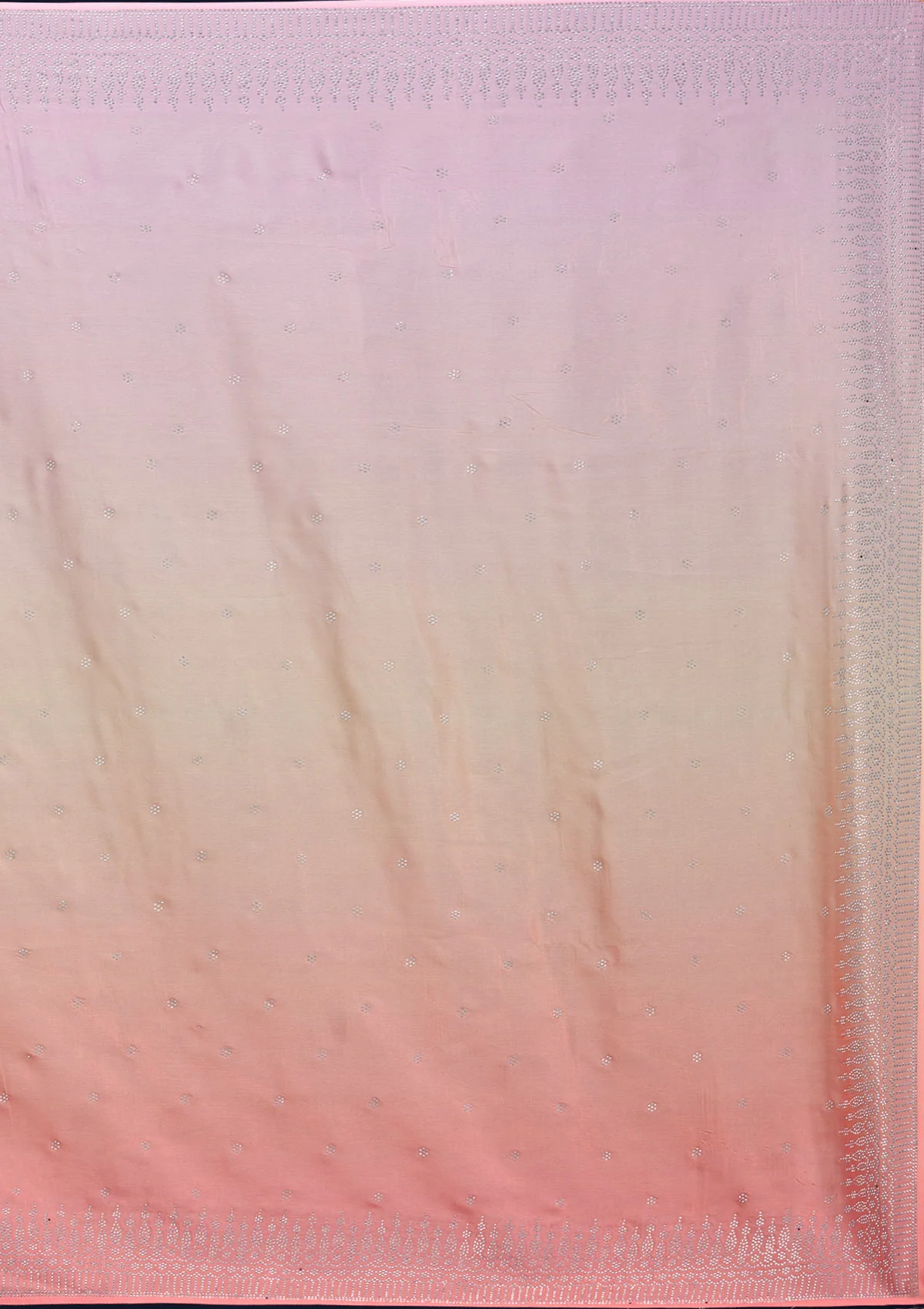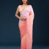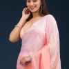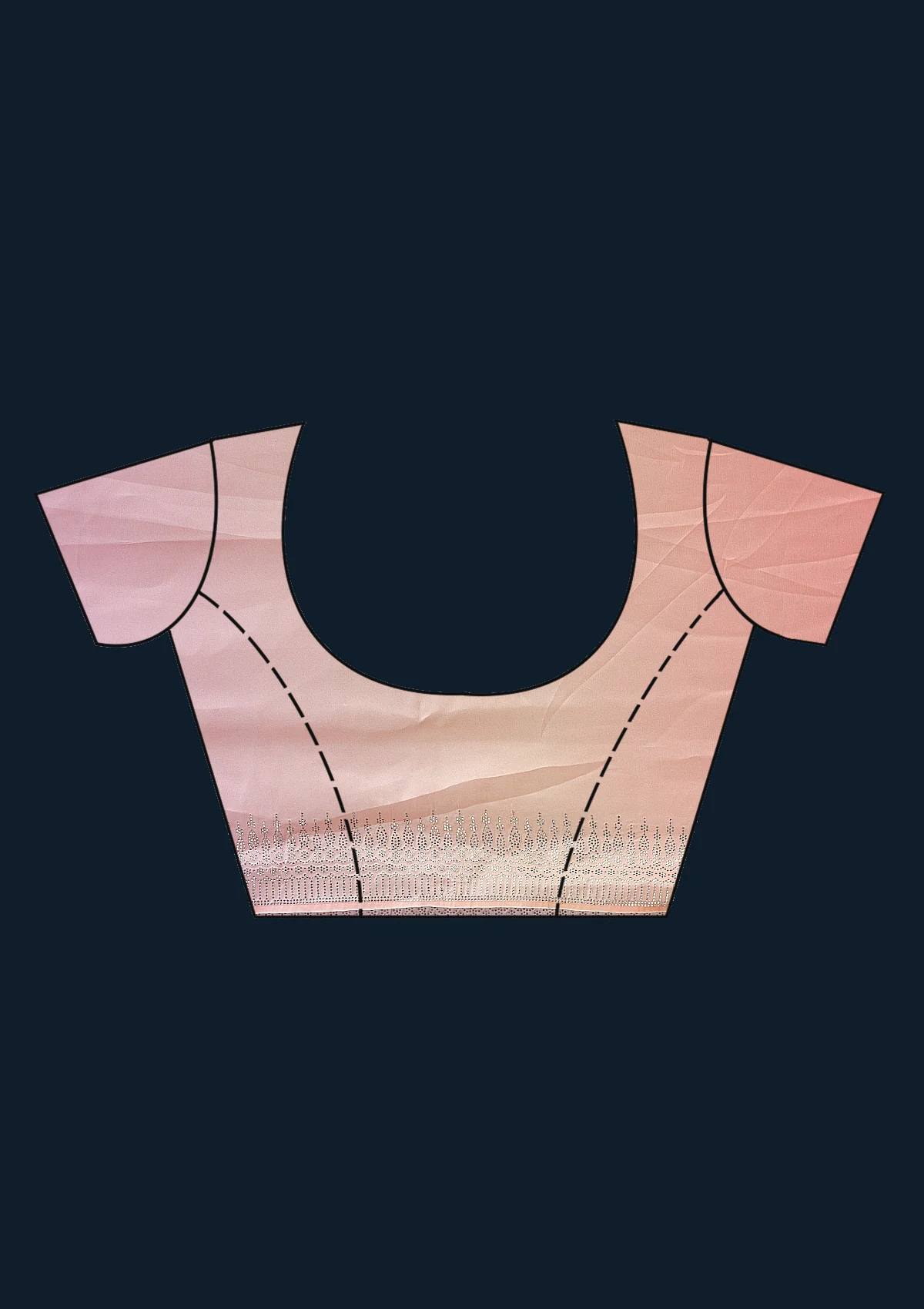 Drape yourself in the opulence of Wearfella Trends peach satin saree, where luxury meets a dash of playful glamour! Featuring intricate silver stonework that casts a spell of sparkling elegance, this saree promises to elevate your evening with its fluid satin fabric that glides as gracefully as you do. Perfect for those who love to express their vibrant spirit with a touch of timeless sophistication!.