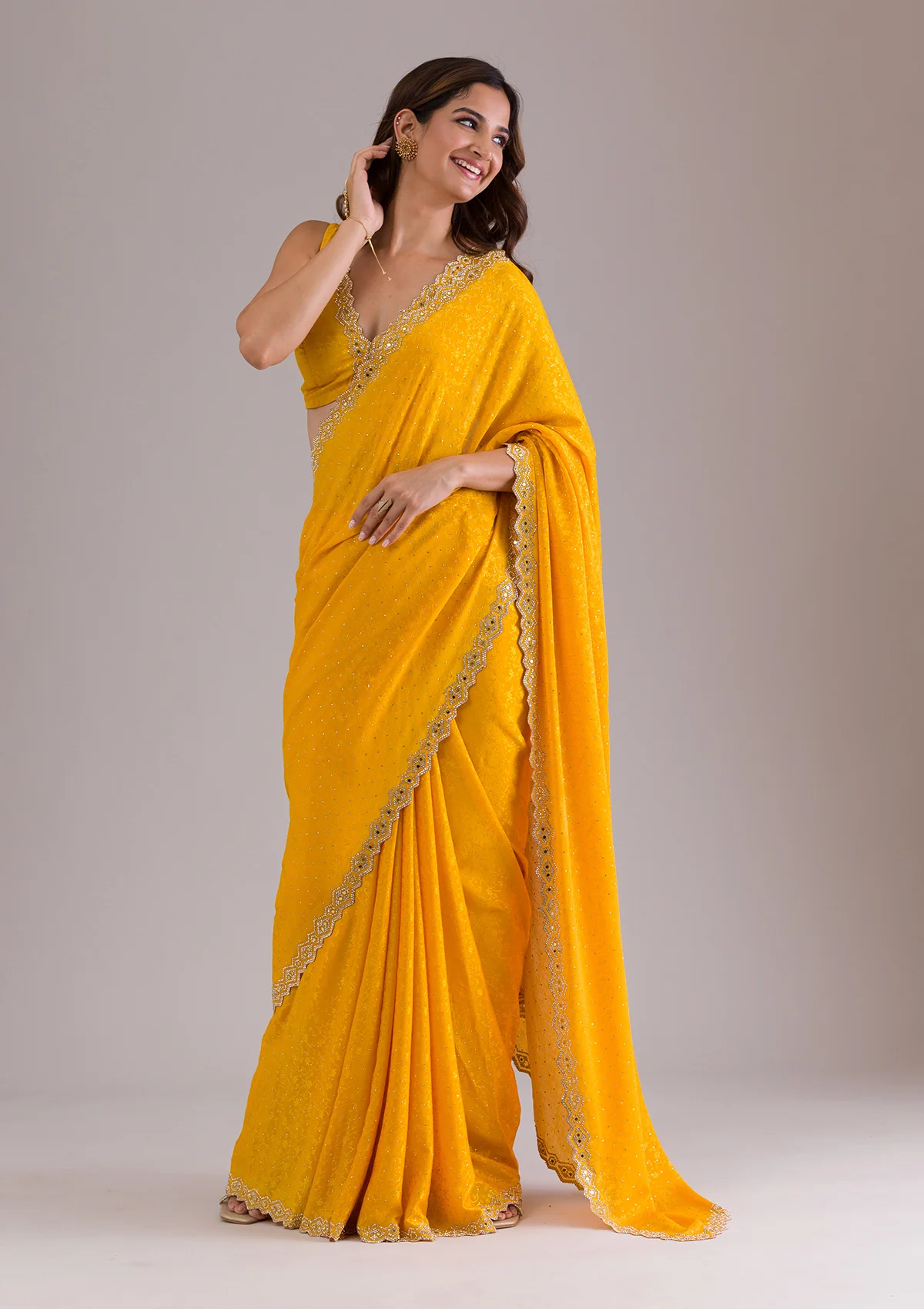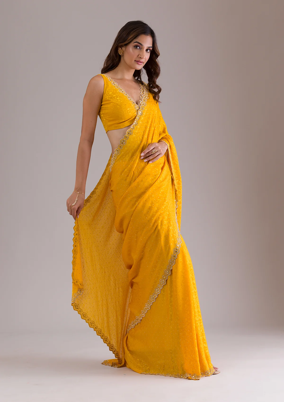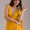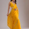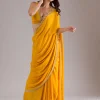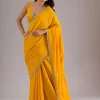 Mustard Saree in Semi Crepe fabric. The Saree is elevated with Stonework embroidery. It comes with an Unstitched blouse. Comes with the Wearfella Trends promise of premium quality.