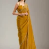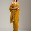 Mustard Saree in Georgette fabric The Saree is elevated with Threadwork embroidery It comes with an Unstitched blouse Comes with the Wearfella Trends promise of premium quality.