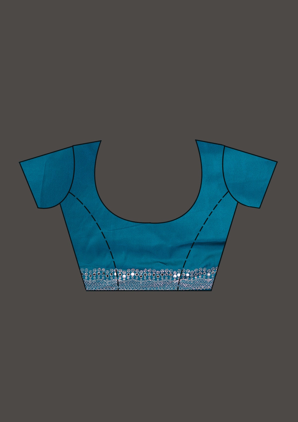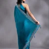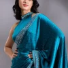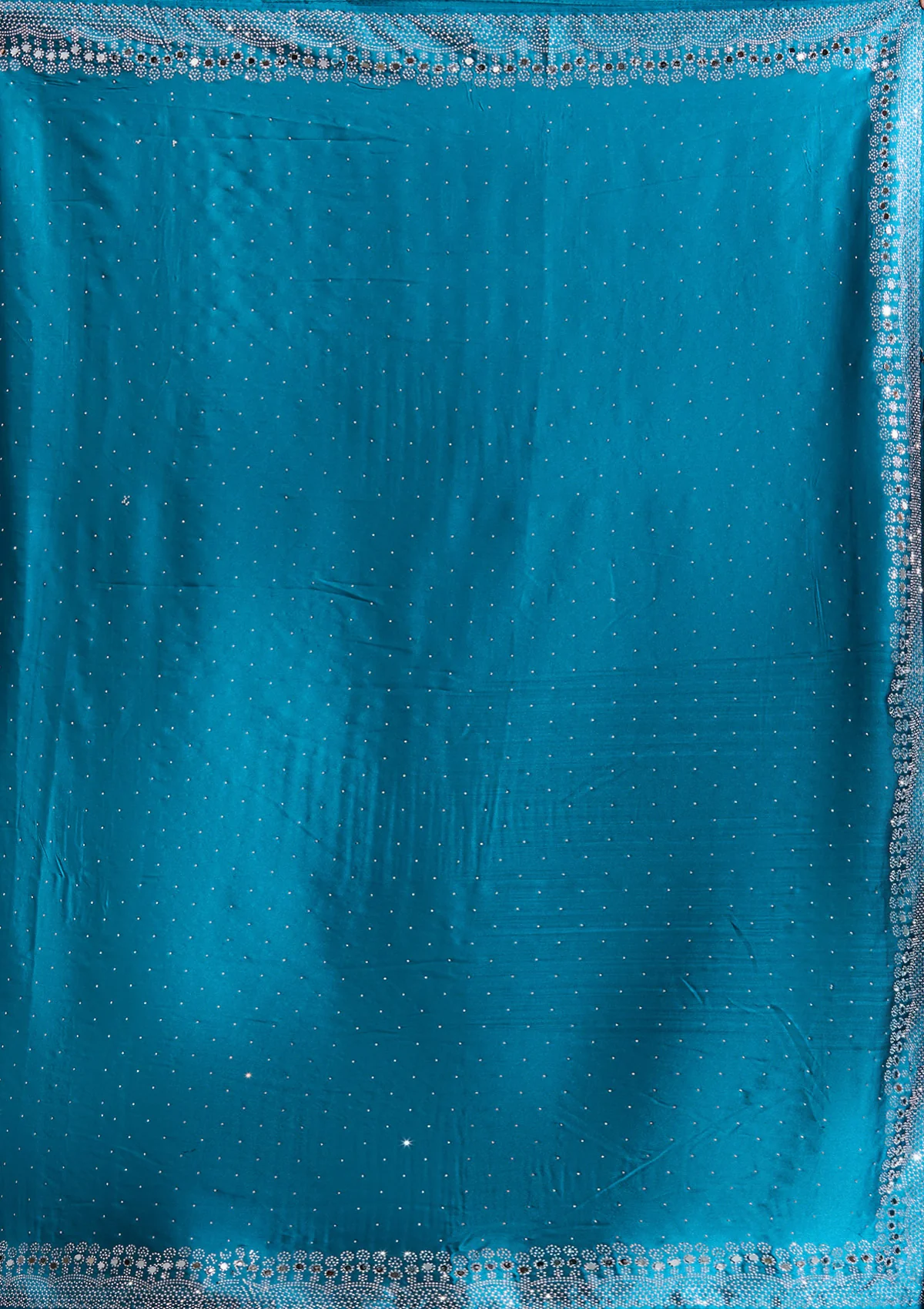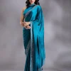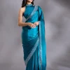 Peacock Blue Saree in Satin fabric. The Saree is elevated with Stonework (Silver) embroidery. It comes with an Unstitched blouse. Comes with the vWearfella Trends promise of premium quality.