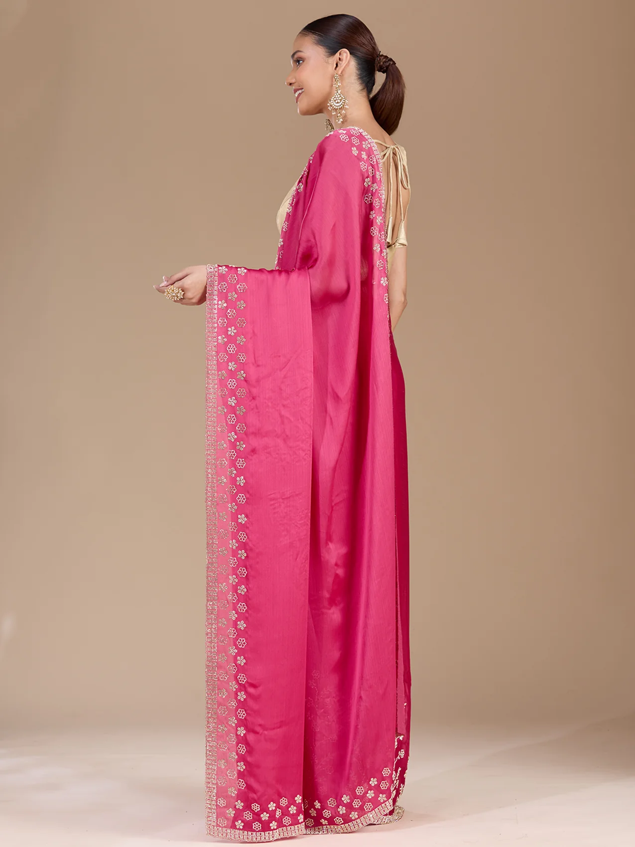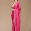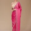 Pink Stonework (Gold) Chiffon Saree