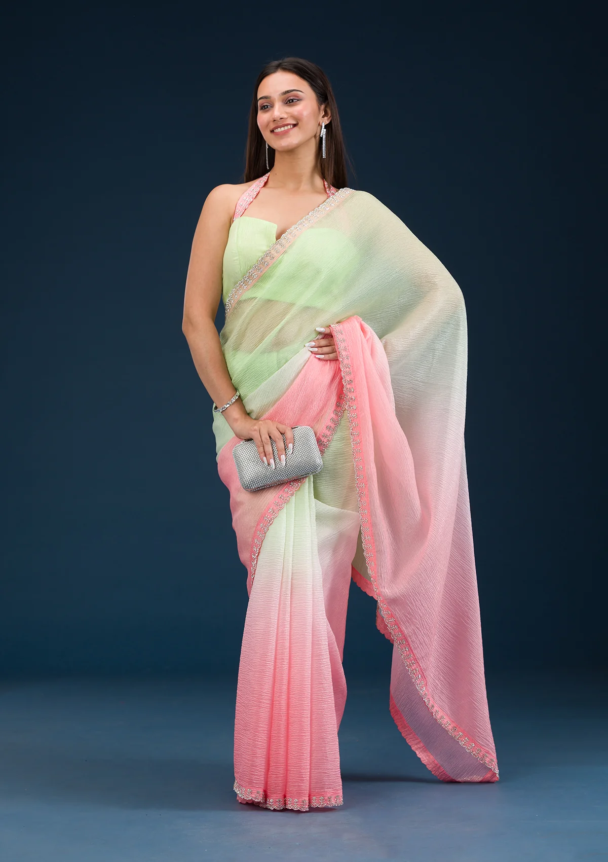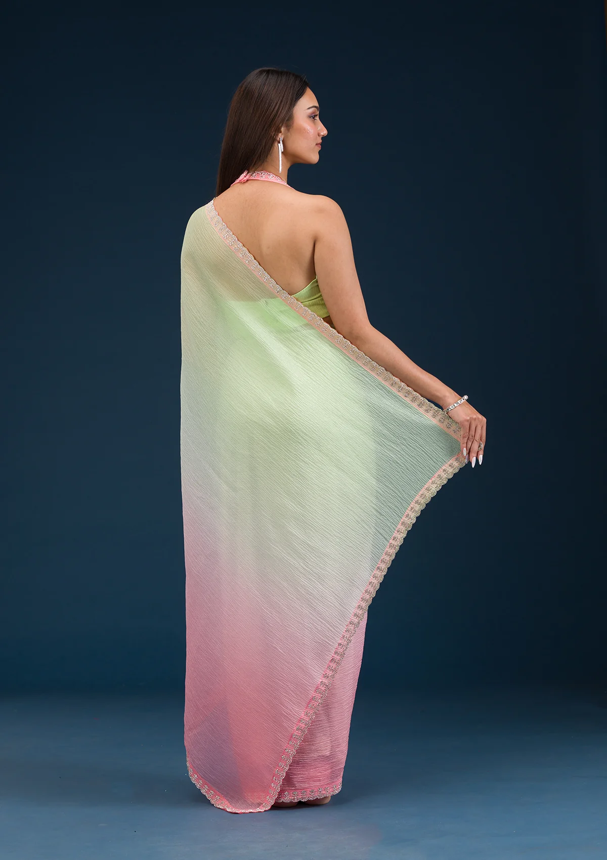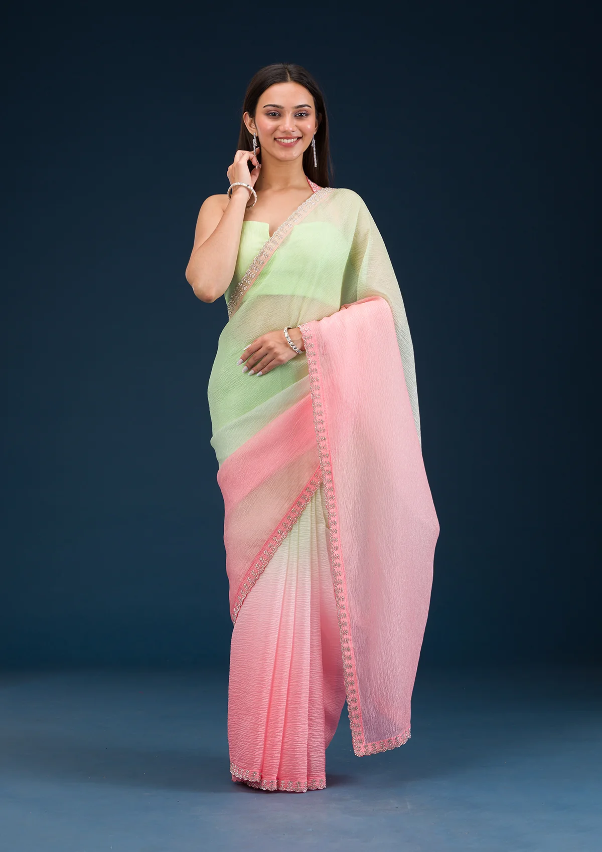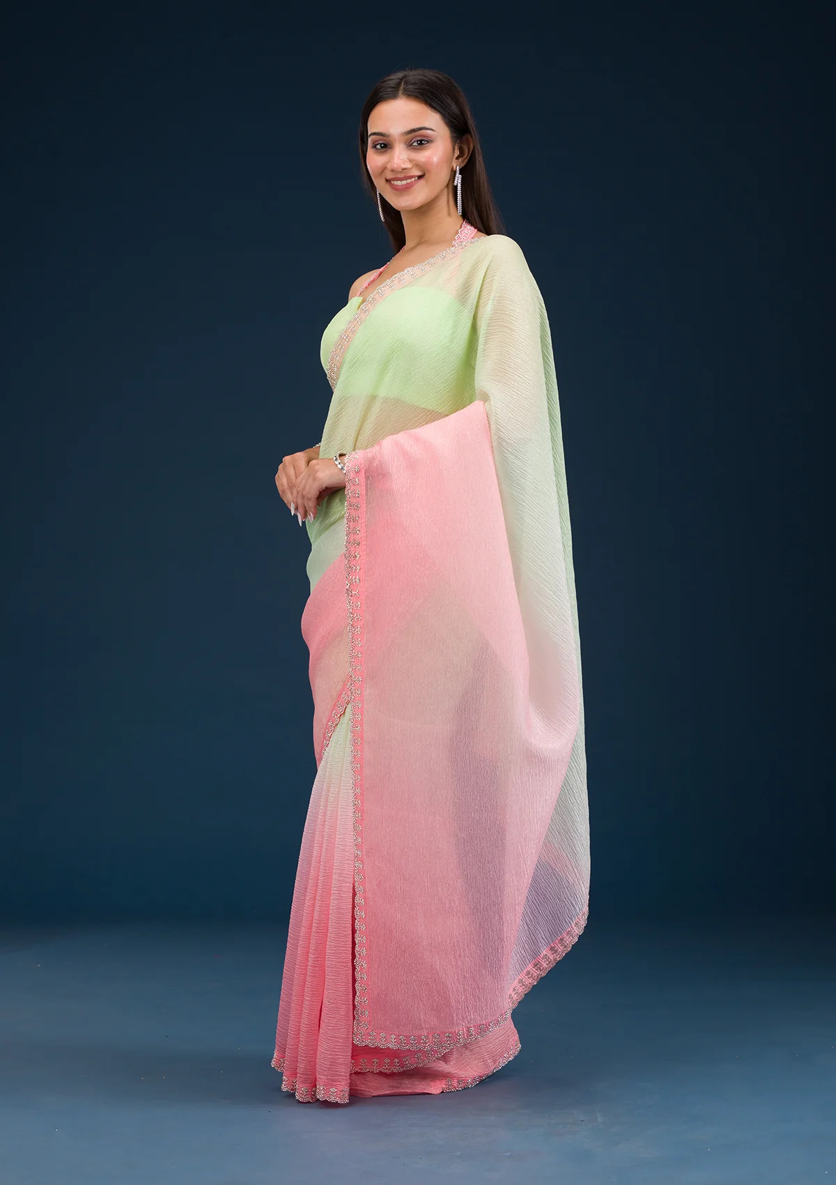 Pista Green Saree in Tissue fabric. The Saree is elevated with Prints . It comes with an Unstitched blouse. Comes with the Wearfella Trends promise of premium quality.