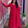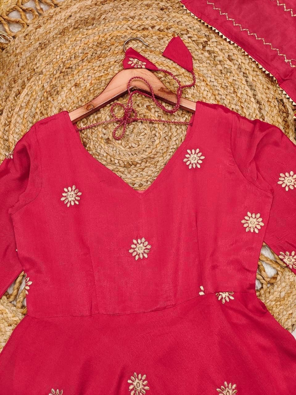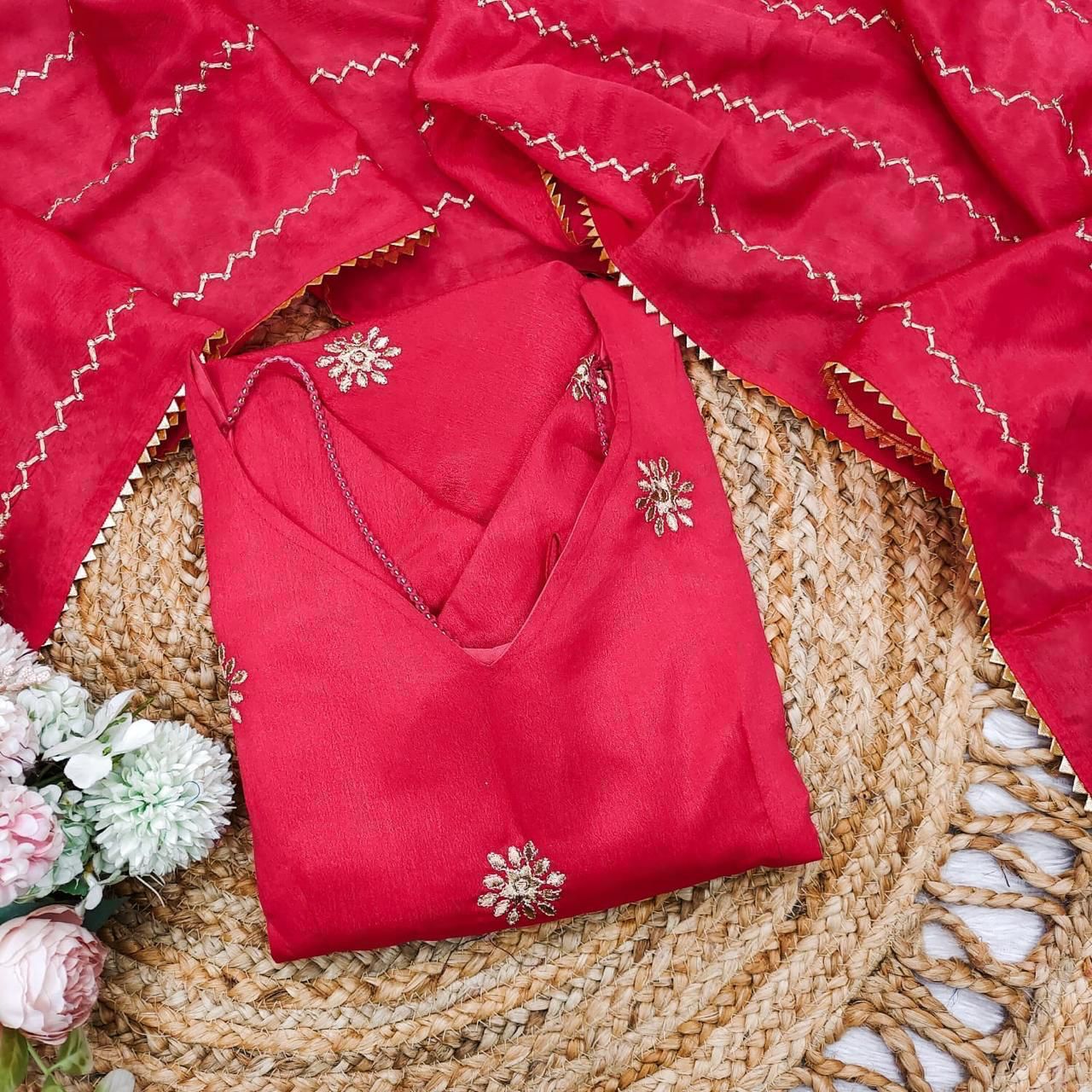 *The fabric used for both the kurti and dupatta is chinon, which has a soft and flowy texture. 💗There is intricate embroidery work all over the kurti and dupatta, 💝featuring delicate golden motifs. The dupatta is adorned with a finely crafted border, enhancing its elegance.* *