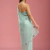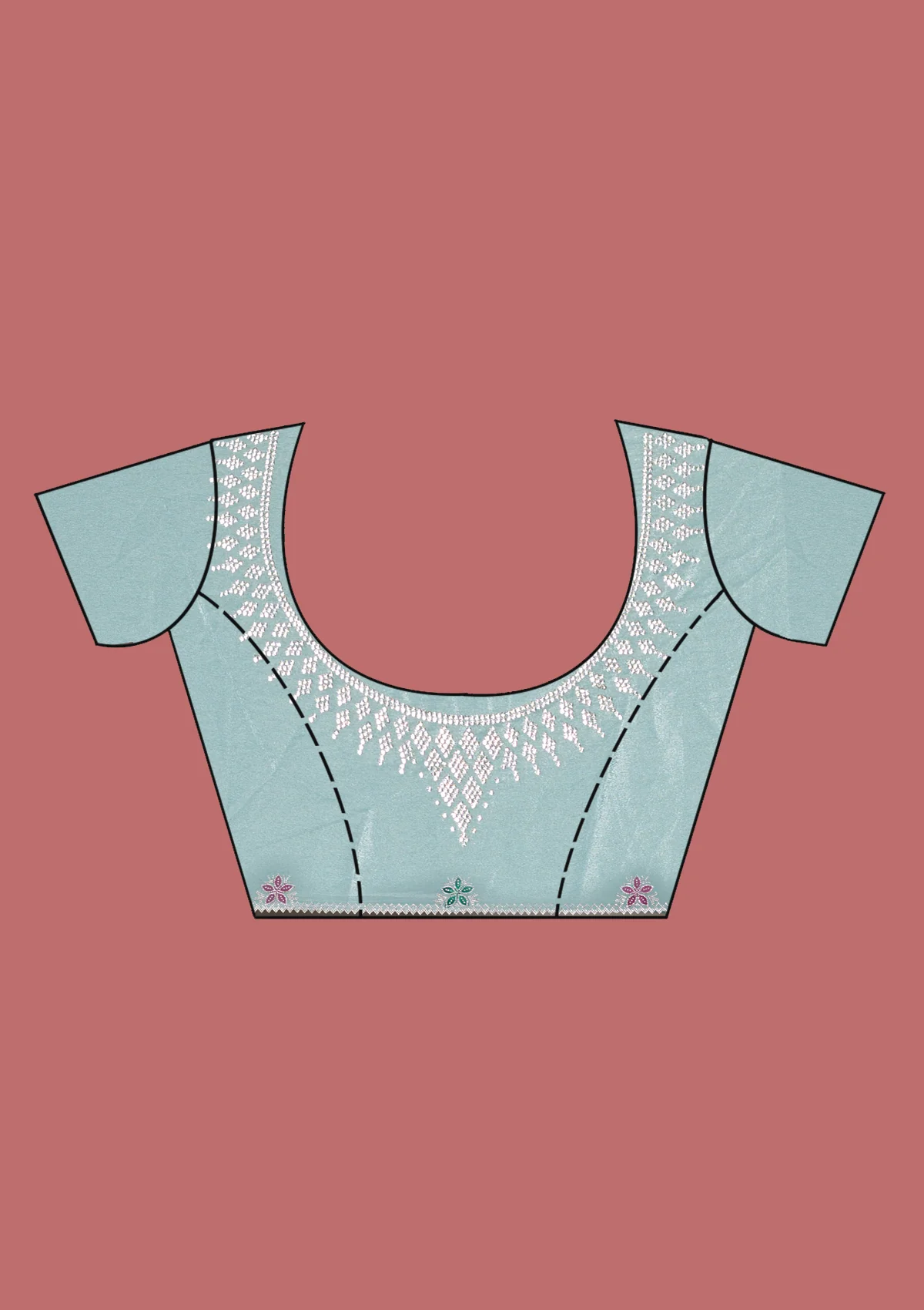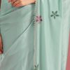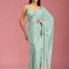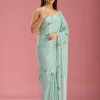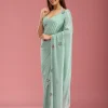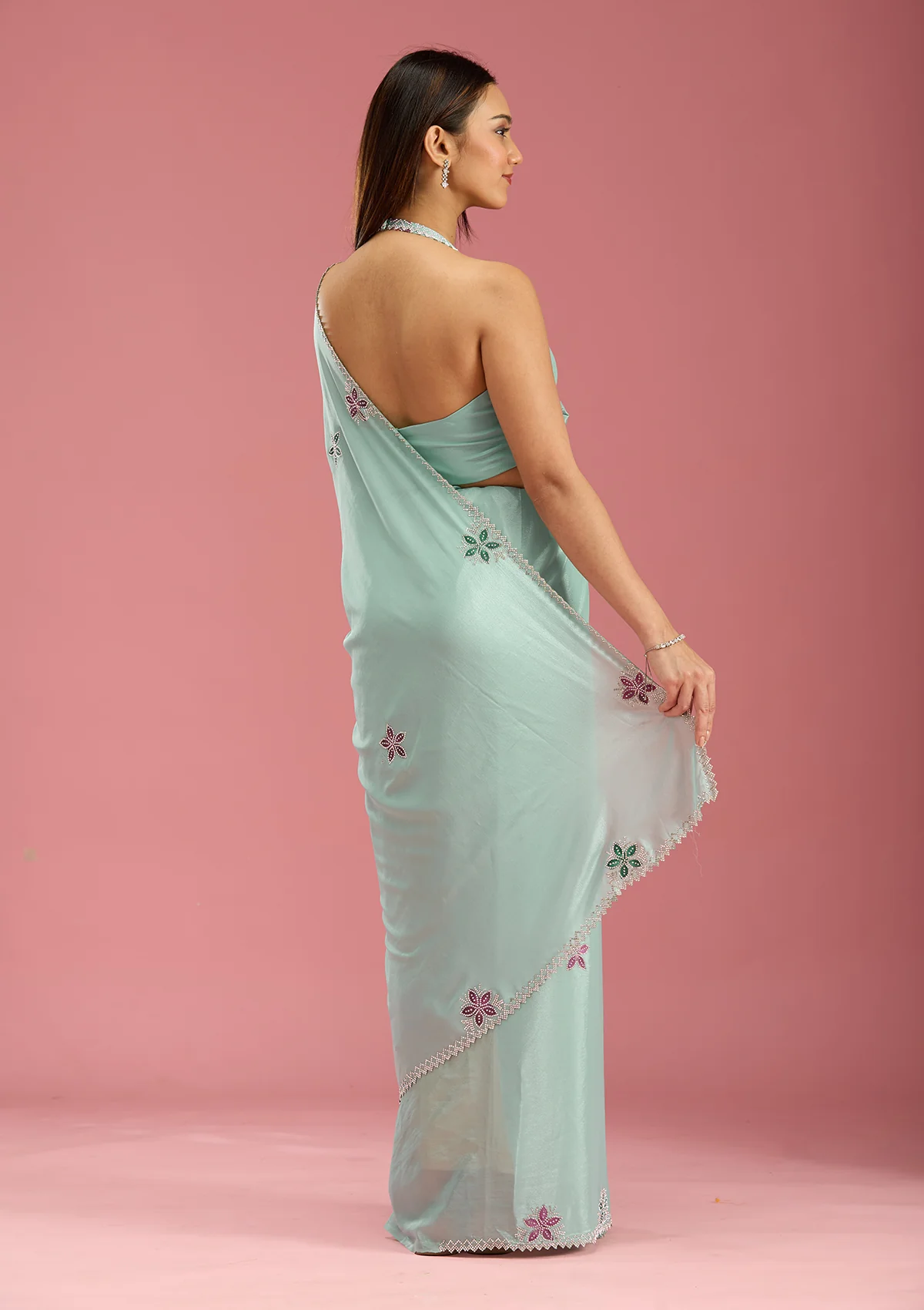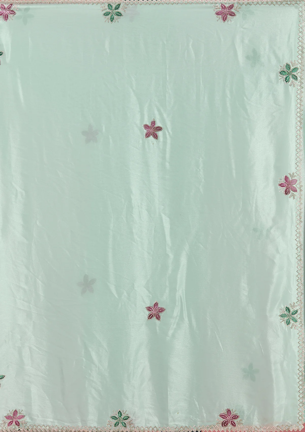 Sea Green Saree in Satin fabric. The Saree is elevated with Stonework (Silver) embroidery. It comes with an Unstitched blouse. Comes with the Wearfella Trendsi promise of premium qulity.