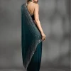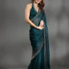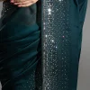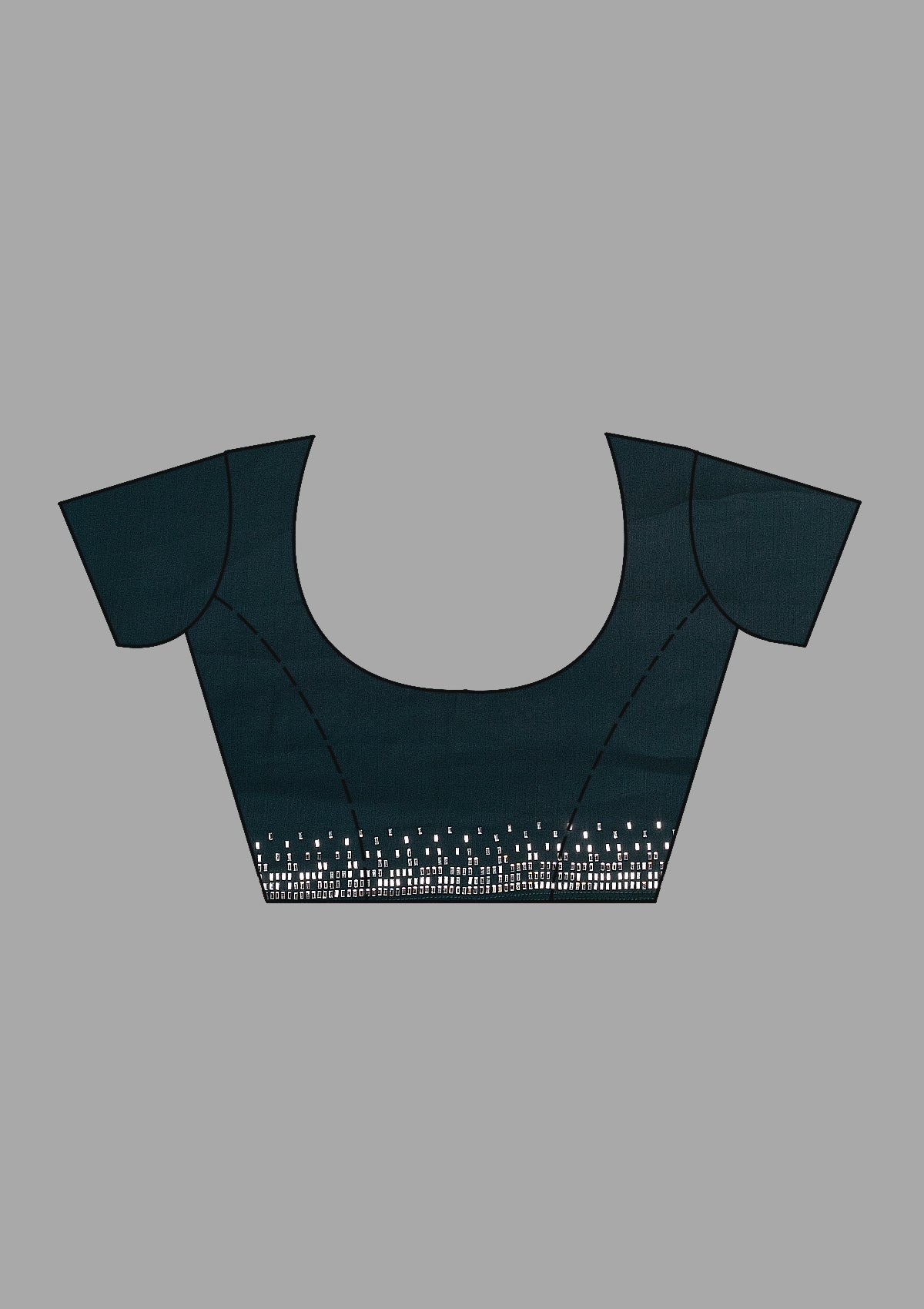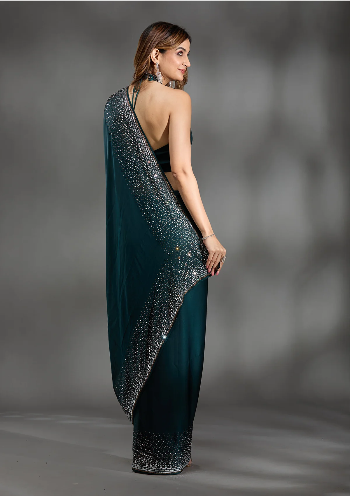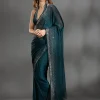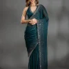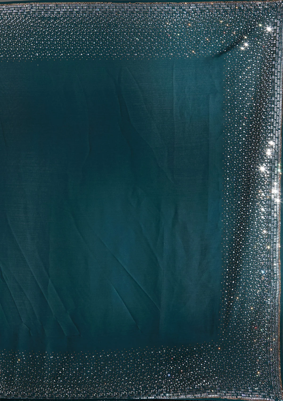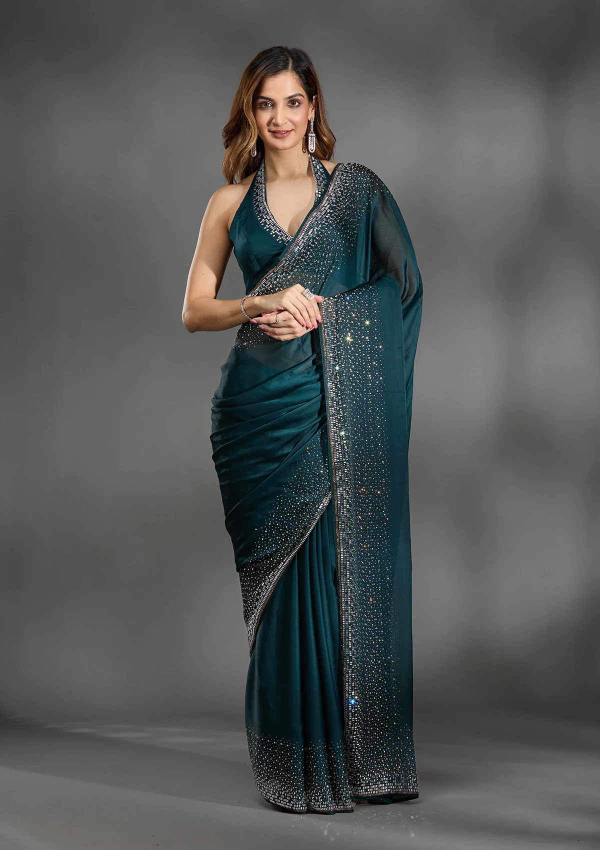 Teal Green Saree in Chiffon fabric The Saree is elevated with Stonework embroidery It comes with an Unstitched blouse Comes with the Wearfella Trends promise of premium quality.