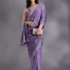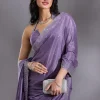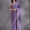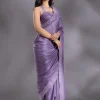 Violet Saree in Satin fabric. The Saree is elevated with Stonework (Silver) embroidery. It comes with an Unstitched blouse. Comes with the Wearfella Trends promise of premium quality.